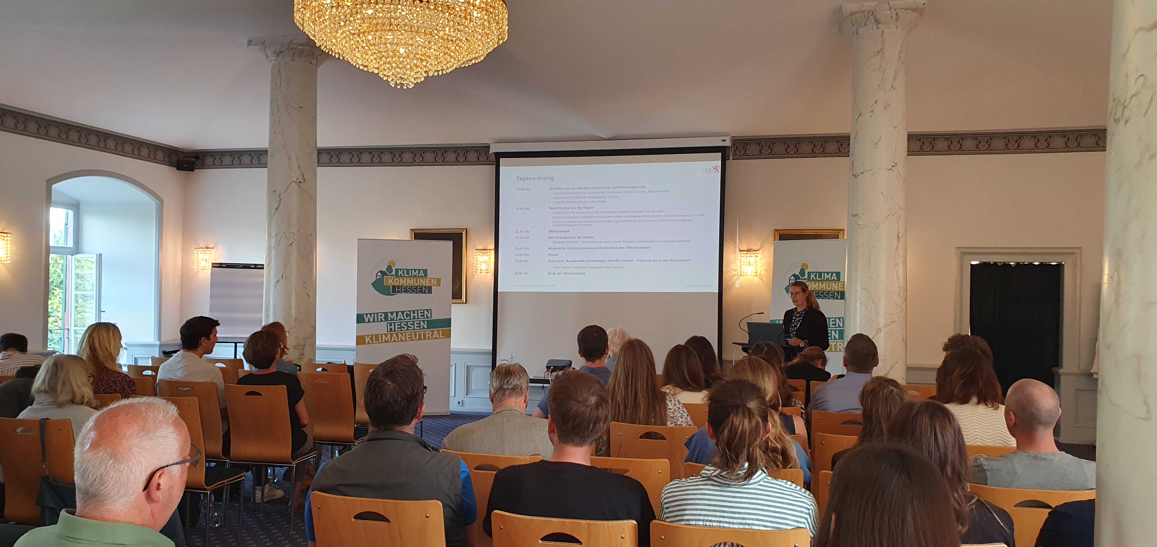 Zunächst informierten das Hessische Ministerium für Landwirtschaft und Umwelt, Weinbau, Forsten, Jagd und Heimat, das Fachzentrum Klimawandel und Anpassung sowie die Fachstelle der Klima-Kommunen über aktuelle Entwicklungen in Klimaschutz und -anpassung.